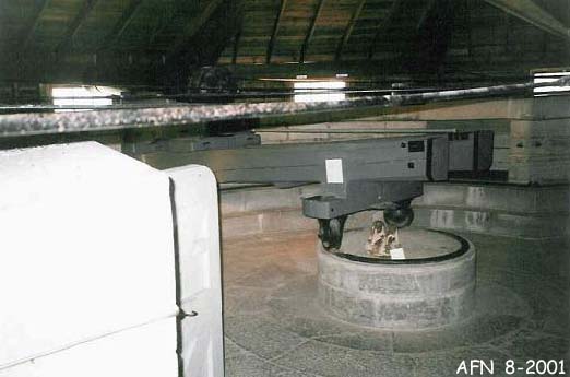 The Martello Tower, which now houses the Royal Military College of Canada Museum, has four floors; the lower floor (ordnance and barrack store rooms), main floor, second floor, and the gun platform. Fort Frederick was to be the most heavily armed of all the Kingston Martello towers. It was capable of firing over the parapet of the main battery into Navy Bay and the commercial harbour, and of sweeping most of low-lying Point Frederick. The tower had three 32-pounder guns on the top gun platform, each with an effective range of approximately 2,000 yards or 1,830 meters. They could fire solid shot, hollow shell, or "hot shot". Each gun was manned by one officer and six men, and could be fired and reloaded again in 90 seconds. The 32-pounder carronades within the tower on the main and second floor could fire grape or solid shot to a distance of 400 meters. The ramparts had six 32-pounder guns, two 5.5-inch howitzers, two 24-pounders, and one 8-inch rifled Armstrong gun. The Armstrong gun could fire a 100-pound round to a range of approximately 4.5 miles or 7.3 kilometers. The tower was not fully armed until 1863. However, after the introduction of rifled guns in the 1860's, the tower became obsolete as a defensive structure. It was then used as barracks for British troops until their withdrawal from Canada in 1870.