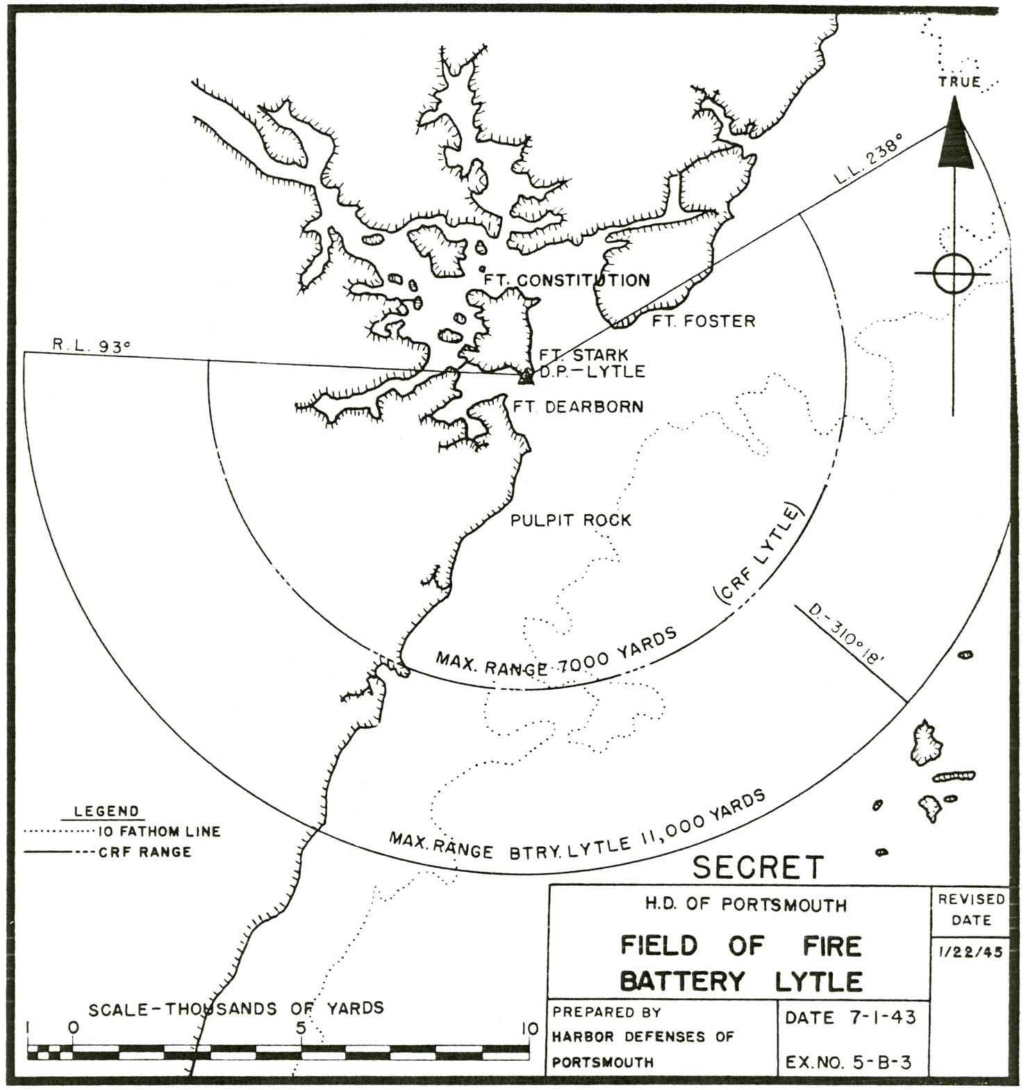 Field of Fire - Battery Hunter 1938 Field of Fire - Battery Hays 1938 Field of Fire - Battery Lytle 1938 Field of Fire - New Battery Lytle 1945 Arc of Detection - SCR-682 HDCP/HECP