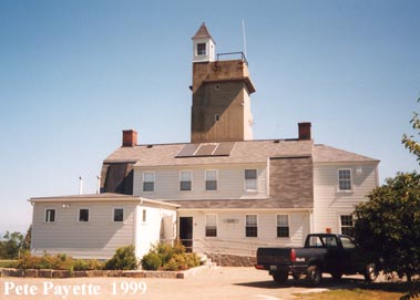 The rear of the house, which was always used as the main entrance. The original steeple on top of the tower was removed in 1945 and replaced by a modified SCR-548 radar unit by MIT-Lincoln Labs and the USAF, which was used for development of the Experimental SAGE Subsector (ESS) System from 1952 to 1960. The original steeple was replicated in 1996, along with a new addition added to the side of the house. The house is currently the Park HQ and Visitor Center for Halibut Point State Park (established in 1981). Admission is free, but there is a $2 parking fee.
