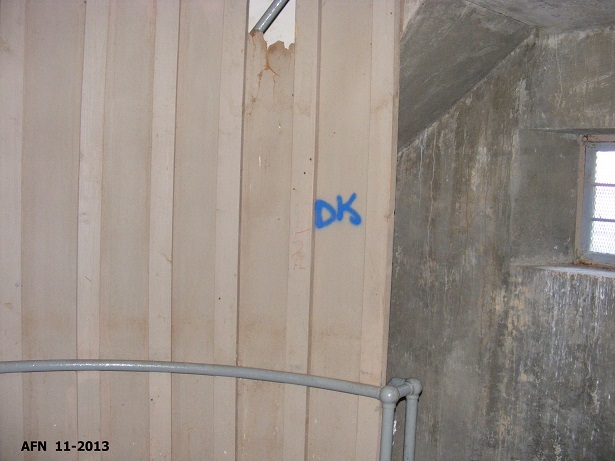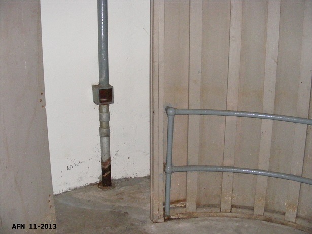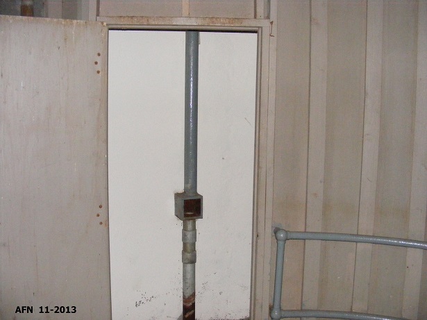 The ladder from the Plotting (or Radio) Room (6th floor) to the lower observation deck (7th floor). |