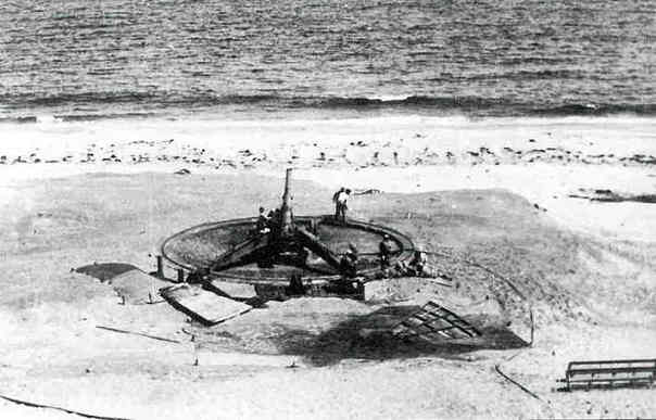 The other remaining mount could not be located during the 2001 site visit, although it was reported visible in prior years. Mounts #2 and #3 were built about 35 feet from the then-shoreline, forming a convex arc between mounts #1 and #4, and are now probably buried deep beneath the sand near the surf line.