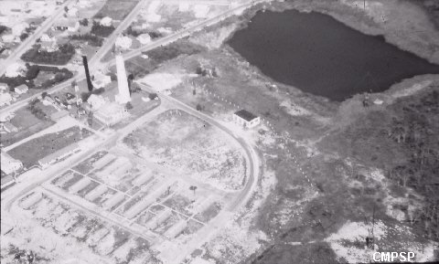 ![]() 1940's aerial view of the barracks area (now the park's parking lot). (courtesy of Cape May Point State Park) |