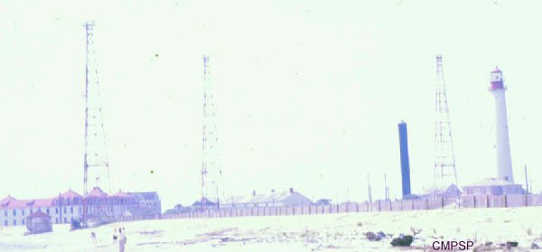 ![]() Three Navy tripod radio towers in 1965. (courtesy of Cape May Point State Park) Left - washed away / Middle - N 38°55.898 W074°57.556 / Right - N 38°55.960 W074°57.597 | |