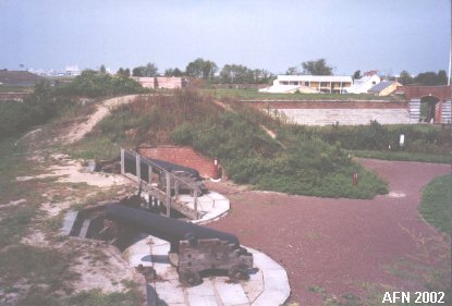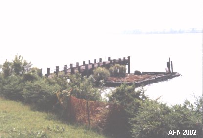 Old wharf with Fort Mercer across the river.