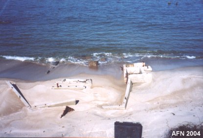 ![]() 2003: more deterioration despite the new breakwaters. The magazine has fallen over and the steps have separated from the gun block. |