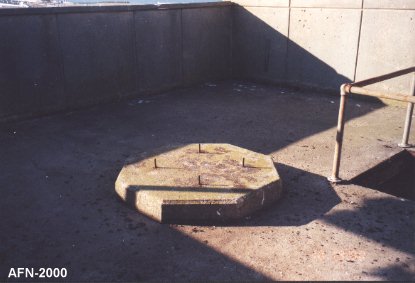 ![]() This pillar is all that remains of the Gun Group Supplementary Station. It was a three-story wooden observing station built in 1916. Later it was converted into the searchlight controller's station. |