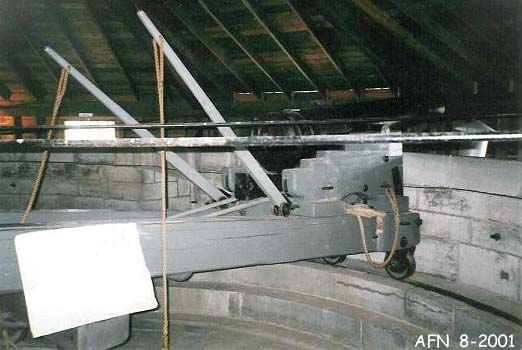 The Martello Tower, which now houses the Royal Military College of Canada Museum, has four floors; the lower floor (ordnance and barrack store rooms), main floor, second floor, and the gun platform. Fort Frederick was to be the most heavily armed of all the Kingston Martello towers. It was capable of firing over the parapet of the main battery into Navy Bay and the commercial harbour, and of sweeping most of low-lying Point Frederick. The tower had three 32-pounder guns on the top gun platform, each with an effective range of approximately 2,000 yards or 1,830 meters. They could fire solid shot, hollow shell, or "hot shot". Each gun was manned by one officer and six men, and could be fired and reloaded again in 90 seconds. The 32-pounder carronades within the tower on the main and second floor could fire grape or solid shot to a distance of 400 meters. The ramparts had six 32-pounder guns, two 5.5-inch howitzers, two 24-pounders, and one 8-inch rifled Armstrong gun. The Armstrong gun could fire a 100-pound round to a range of approximately 4.5 miles or 7.3 kilometers. The tower was not fully armed until 1863. However, after the introduction of rifled guns in the 1860's, the tower became obsolete as a defensive structure. It was then used as barracks for British troops until their withdrawal from Canada in 1870.