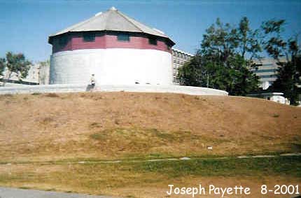 During the War of 1812 against the United States, Kingston was ringed with a log palisade wall and six wooden blockhouses along the western edge of town. Blockhouse #1 was located at Gore and Ontario Streets, Blockhouse #2 was located at Wellington and West Streets, Blockhouse #3 was located at West and Sydenham Streets, Blockhouse #4 was located at Princess and Clergy Streets, and Blockhouse #5 was located near Sydenham and North Streets. A small blockhouse was also located on the shore at West and Ontario Streets. Two inline batteries were located at Sydenham and William Streets, and at Sydenham and Ordnance Streets. Inline barracks were located behind the battery at Sydenham and William Streets. Barracks were also located at Artillery Park at Barrack and Bagot Streets. Also built in 1812 were blockhouses at Point Frederick (see Fort Frederick), Point Henry (see Fort Henry), Murney's Point, and at Snake Island, located about seven miles southwest of the harbour. A large battery was also located at Missisagua Point. An American naval force from Sackets Harbor, New York, attacked Kingston in 1812, driven off by the batteries at Points Frederick and Henry. A stone battery was later built at the Market, located at Princess and Ontario Streets, in front of the present-day City Hall (built in 1841 as the first capitol building of Upper Canada).