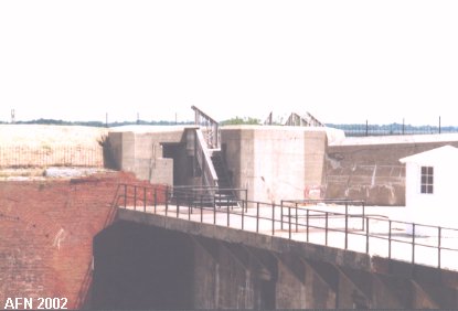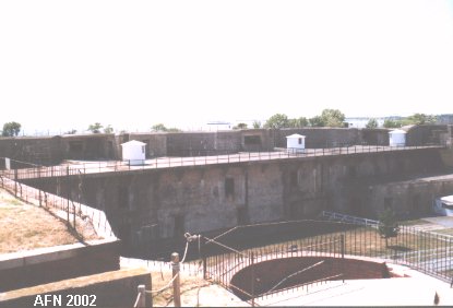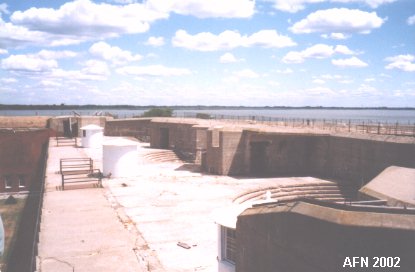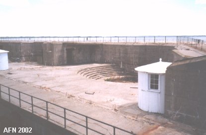 This battery was built inside the old masonry fort. Officers' quarters and enlisted barracks were torn down on this side of the fort. In addition, 34 guns of various sizes were also removed to make way for the new battery. This was a three-level structure, which is rare for Endicott batteries but was necessary to allow the guns to be positioned above the parapet of the fort. The three 12-inch guns were mounted on disappearing carriages. The battery was named for Major General Alfred T.A. Torbert, who was colonel of a New Jersey volunteer regiment during the Civil War. He resigned in 1866, and drowned at sea in 1880. {see "American Seacoast Defenses" 2nd Ed. page 138}