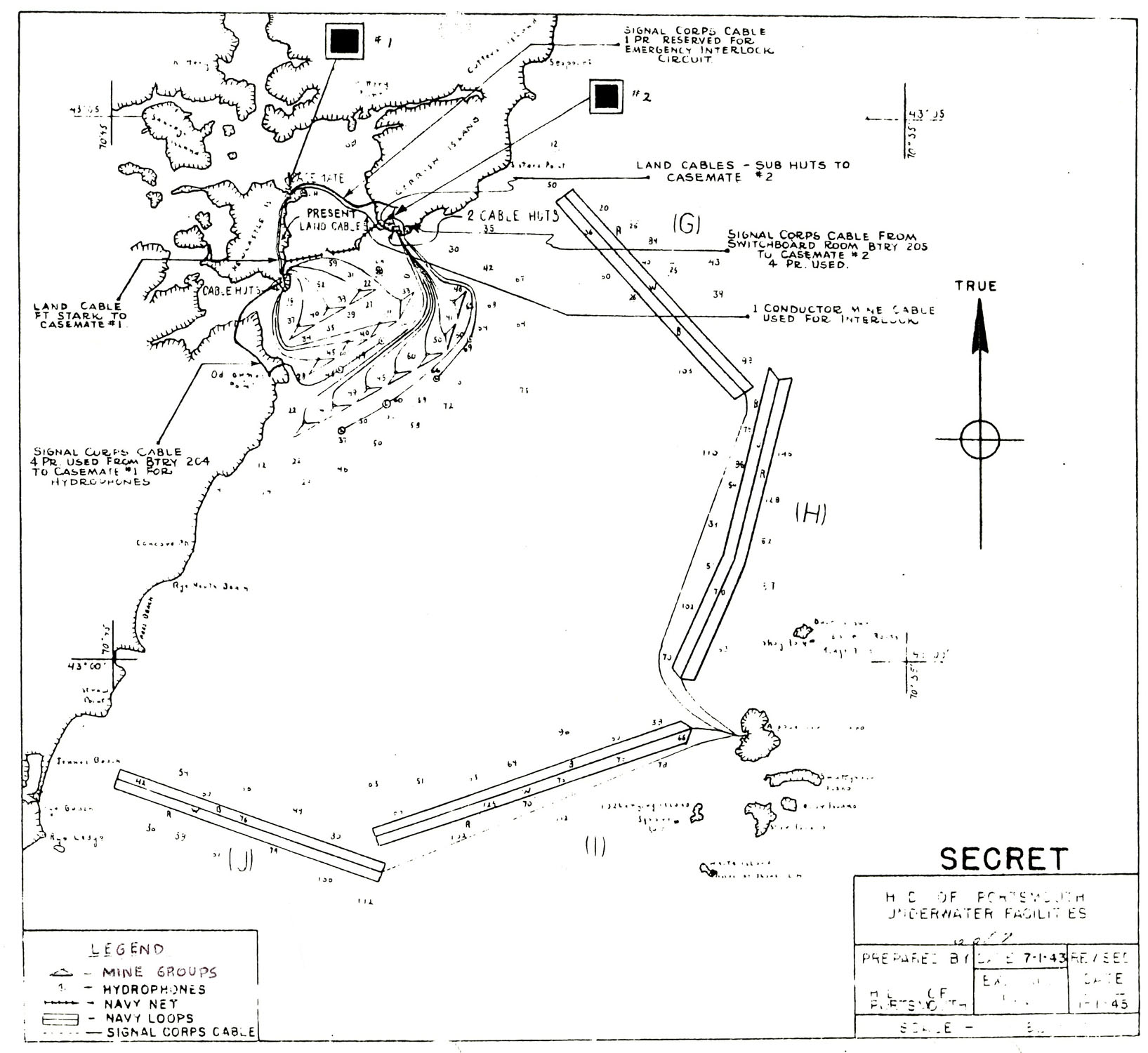 Hydrophones and sono-buoys, controlled from Forts Stark and Foster, were used within the harbor minefield in World War II, and also after the war by the Navy to detect Soviet subs. Magnetic indicator loops, controlled from Appledore Island, were used to detect submerged enemy submarines trying to enter the harbor. The loops were deployed from Sisters' Point to the Isles of Shoals, and then back to Rye Ledge.