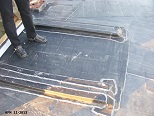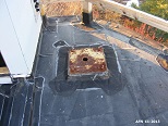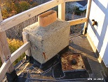 On the roof deck, the original rails for the sliding trap-door (or scuttle), now weather-sealed. |