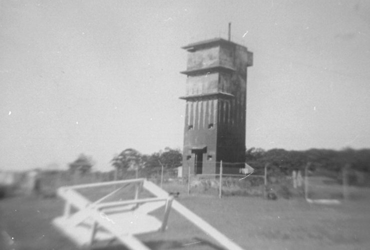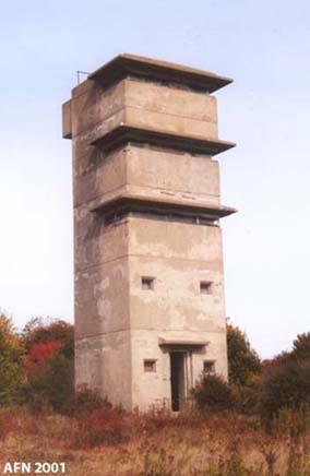 This five-story concrete tower was completed in July 1942 on a government-owned 4.71 acre site as a combined Base-End Station for Fort Foster and Fort Dearborn. The Army barracks was not attached to the tower. The fifth-story observation level was intended for Battery 205 (B4 S4), the fourth-story level was for Battery 204 (B5 S5), and the third-story level was for Battery 103/Seaman (B9 S9). The fifth level was later changed to the HD OPS 3 station for the Portsmouth Harbor Defense Operations Command. The roof deck/balcony was used for the anti-aircraft intelligence service (AAIS OP 8). Searchlight positions #13 and #14 were located southwest and southeast of the tower. An SCR-296A fire-control radar on a 100-foot tall steel-frame tower, with an adjoining concrete-block operating room, was located on the north-side of the concrete tower. An SCR-268 mobile radar unit was set up in 1944 southeast of the concrete tower, adjacent to searchlight #14. The concrete tower, located at the end of Goodwin Road, was demolished by the new landowners in May 2004. There are no visible remains today.