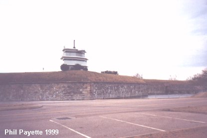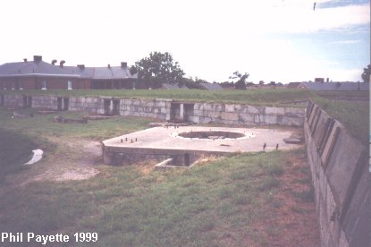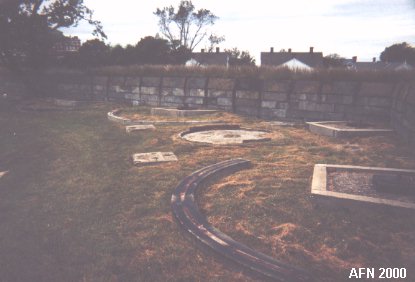 ![]() The Meteorlogical Station (1903) foundation at the N.E. bastion. Used as the Harbor Defense Command Post (HDCP) in 1928. And in 1941, a searchlight controller and a Base-End Station for the proposed 16-inch battery. N 37°00.294 W076°18.310 |